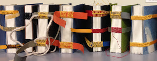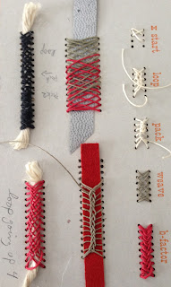 Denise is a fantastic and inspiring instructor. She makes learning this crazy stitch inevitable. First we practiced the stitches on laser-cut cards, then on a text block. All attempts were examined and reviewed closely by our fearless instructor, because once upon a stitch...a struggling student invented a new sewing pattern, now known as the B-factor, in one of Denise's classes. Who knows! It could happen again.