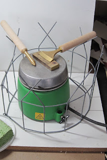 After relying on bricks and other precarious perches for holding tools on the surface of my VWR adjustable lab hotplate, I came across a scrap of rabbit wire fencing in my garden shed and thought “aha"! I cut a strip two rows tall with protruding ends whose length would enable me to circle the hotplate and cinch it shut. I then cut off the top (horizontal) row of wire and bent the vertical ends into X’s to form rests. The X’s can be adjusted to allow tools of different lengths/shapes to lie flat on the surface of the hotplate. A small piece of sandpaper could be used to smooth over any sharp edges.
